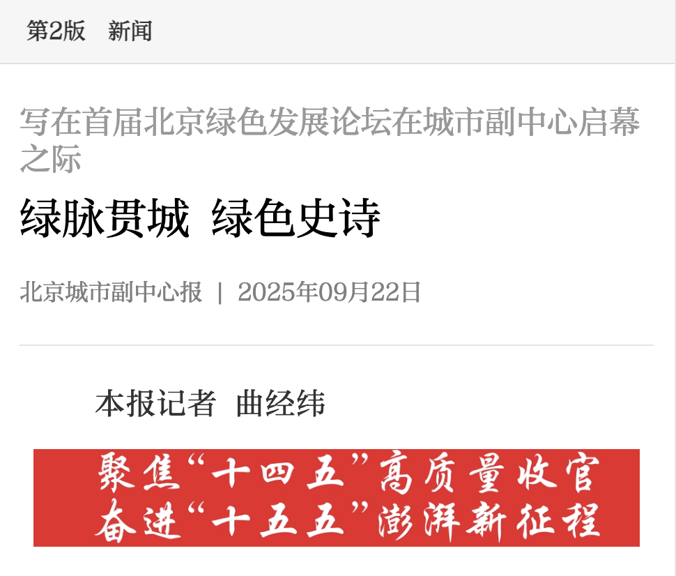 北京城市副中心报|写在首届北京绿色发展论坛在城市副中心启幕...