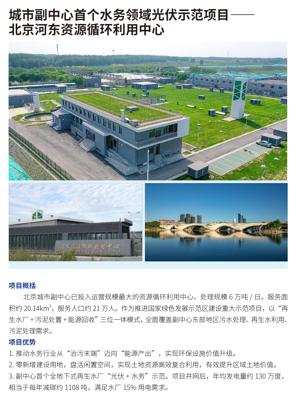 高质量建设“蓝绿交织,水城共融”北京城市副中心,集团碧水、河东、张家湾三座下沉式再生水厂承担北京城市副中心85%以上再生水处理任务,实现水资源100%利用。