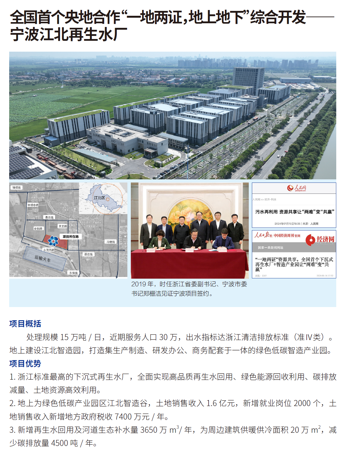 全国首个央地合作“一地两证,地上地下”综合开发——宁波江北再生水厂