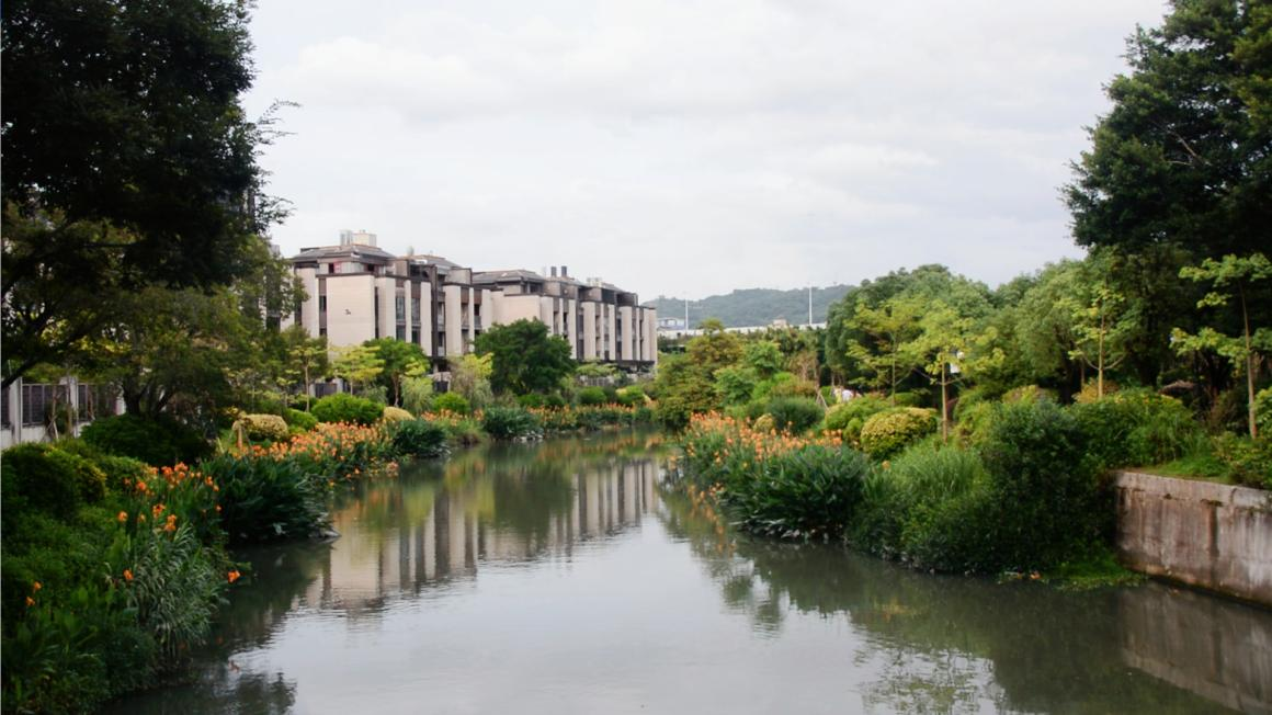 台屿河公园入口处水系