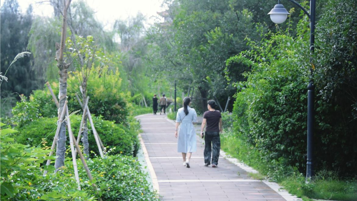 在台屿河公园散步的居民