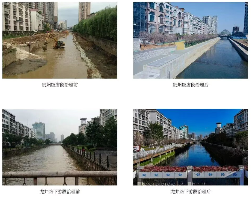 主要做法及成效:一是提升能力做“加法”,筑牢生态基底。投入75.91亿元,引入社会资本116亿元,在南明河主城段沿线新建20座再生污水处理厂,污水日处理能力从99万吨跃升至183.5万吨,达标尾水每日为全流域补充150万吨生态水量,每年节省跨域调水水量5亿吨,显著提升河道自净能力。同步完成7.3万平方米生态构建及局部修复,建成1.53万平方米浅滩湿地、3万余平方米生态驳岸,治理水土流失面积1004平方千米,河道生态系统逐步恢复生机。二是降低负荷做“减法”,清除污染根源。累计清淤干支流河道113.08万立方米,整治回填深坑21.64万立方米,铺设防淤管道2.3千米,改造翻板坝5座。实施19条排水大沟整治,新建污水管网65千米,改造排口263个;排查整改“四乱”问题125个,从源头有效削减污染物入河负荷。三是放大价值做“乘法”,惠及民生福祉。结合人文历史和科普教育,建设休闲步道、科普馆、文化墙等便民与宣传设施。同时,联动谋划流域经济带与文化圈,推动生态保护与民生改善、文化传承深度融合。着力提升南明河水生态文化品位,打造以湿地公园为代表的滨河风光,以城区中心段筑城广场等为代表的城市景观,以上游镇山村等为代表的村寨景观,实现生态效益与民生福祉互惠共利。四是立足长远做“除法”,构建长效机制。出台《贵阳市南明河保护规定》,印发实施《南明河流域断面考核及奖惩办法》,累计收取生态补偿资金3951.38万元,统筹用于南明河流域水环境综合治理。推进工业企业“退城进园”,优化产业布局;依托大数据加强河道及排污口精准监管,严厉打击偷排漏排行为,以刚性举措守护河道清洁,筑牢长效治理根基。
