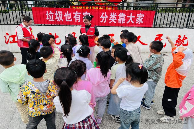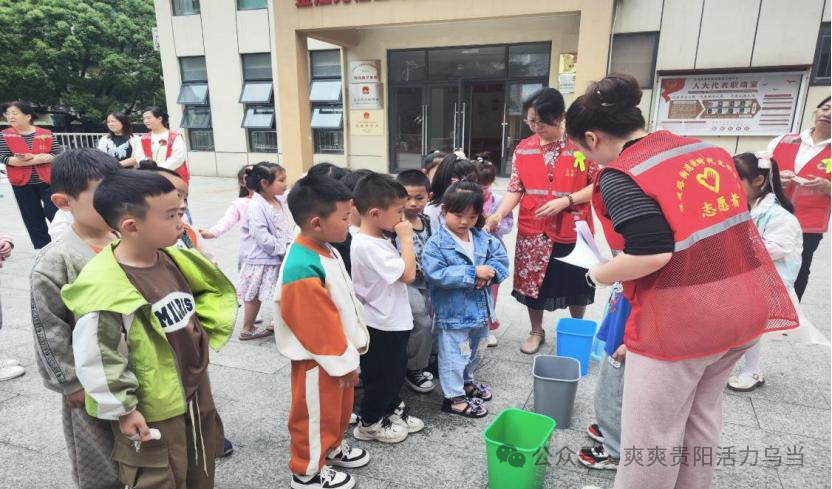 6月5日,乌当区观溪路街道金江苑社区新时代文明实践站协同金江花蕾幼儿园在金江苑社区综合文化活动中心广场开展“‘童’心协力 分类‘童’行”垃圾分类文明实践活动。