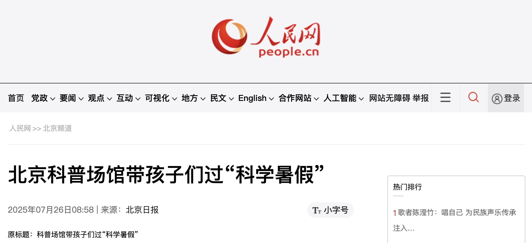 人民网 | 北京科普场馆带孩子们过“科学暑假”