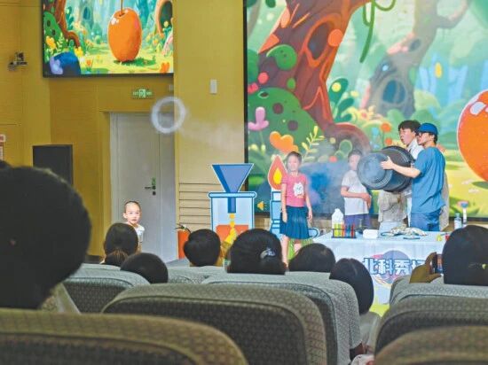 这场科学实验秀,以侏罗纪时代为背景,串起物理、化学等多个经典实验。台上,40分钟的表演趣味十足;台下,孩子们沉浸其中,积极参与互动。“孩子们一直在跟着老师思考。”北京科学中心副研究馆员张军说,科学实验秀主要面向低龄儿童,“我们将科学实验秀设计成连续剧,暑期集中推出,欢迎孩子们来‘追剧’。”