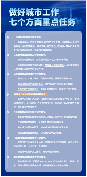 当前和今后一个时期城市工作有哪些重点任务?建设什么样的城市、怎样建设城市?一起学习
