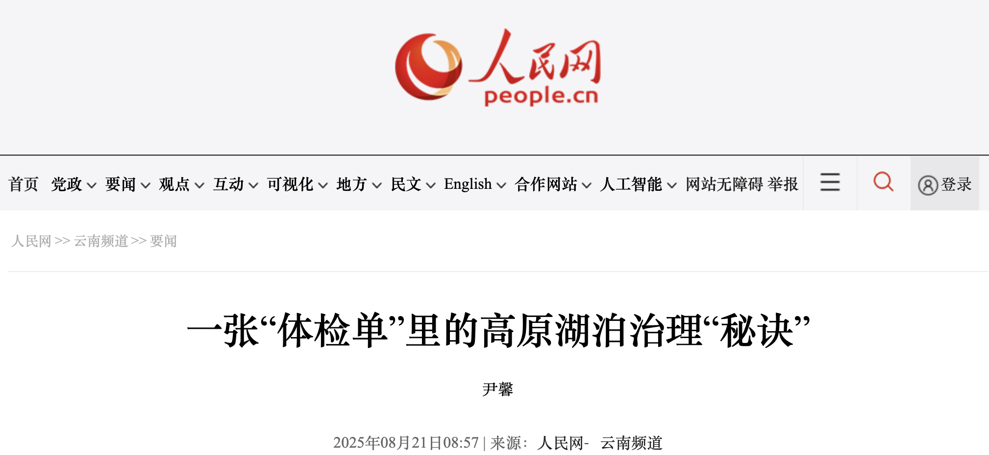 人民网 | 一张“体检单”里的高原湖泊治理“秘诀”