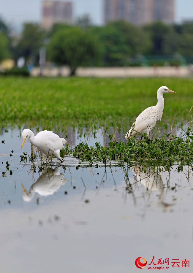 洱海边鸥鹭嬉戏。人民网 尹馨摄