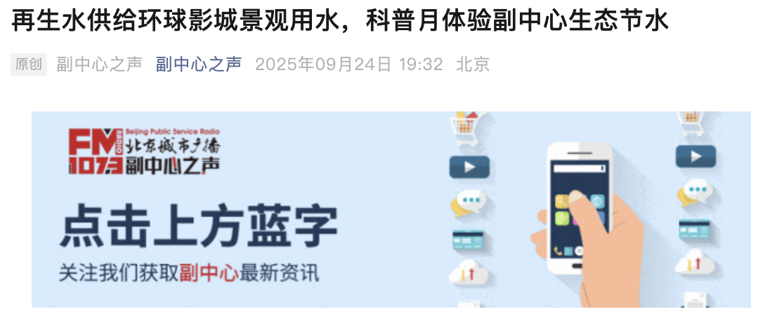 副中心之声 | 再生水供给环球影城景观用水,科普月体验副中心生态节水