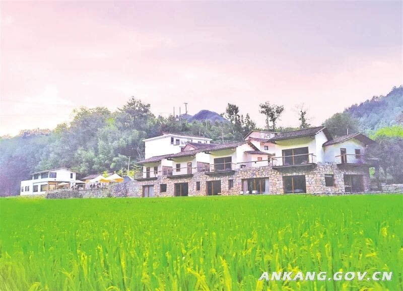 8月7日傍晚,在宁陕县城关镇渔湾逸谷田园综合体,自然美景与现代化民宿相得益彰,构成了一道亮丽的风景线。 王辉 摄