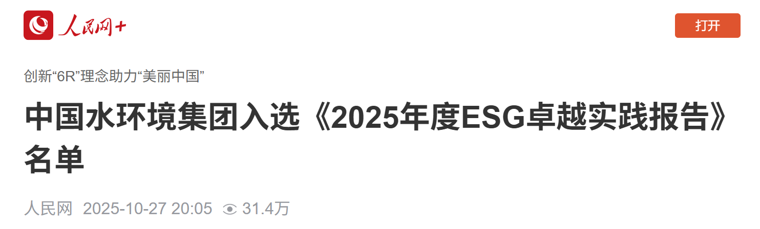 中国水环境集团入选《2025年度ESG卓越实践报告》名单