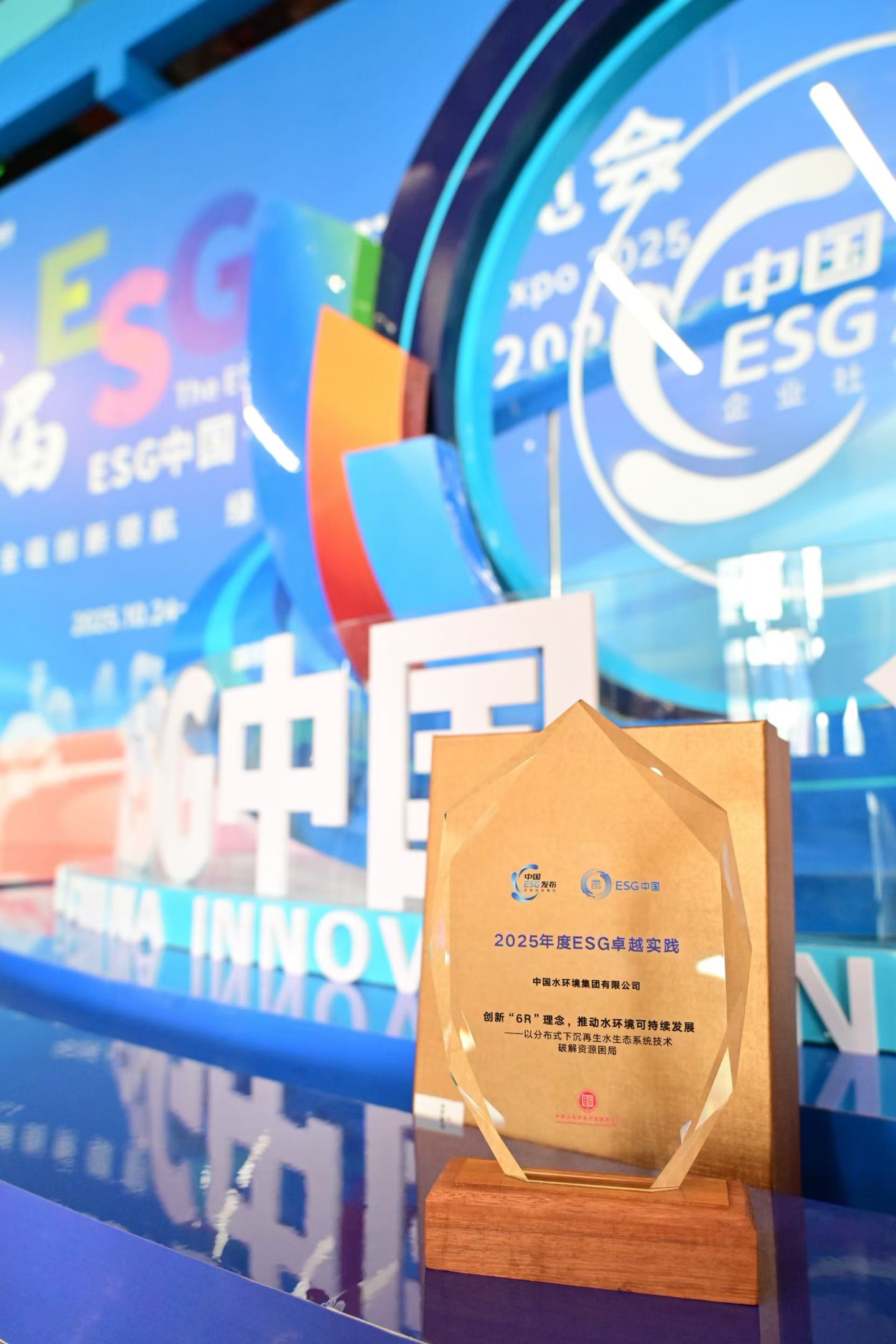 10月24日,ESG中国·创新年会(2025)暨首届ESG国际博览会在北京首钢园召开。大会正式发布了《2025年度ESG卓越实践报告》,中国水环境集团凭借《创新“6R”理念,推动水环境可持续发展——以分布式下沉再生水生态系统技术破解资源困局》案例从213家申报企业中脱颖而出,为更多中国企业走向可持续发展道路提供了实践样板。