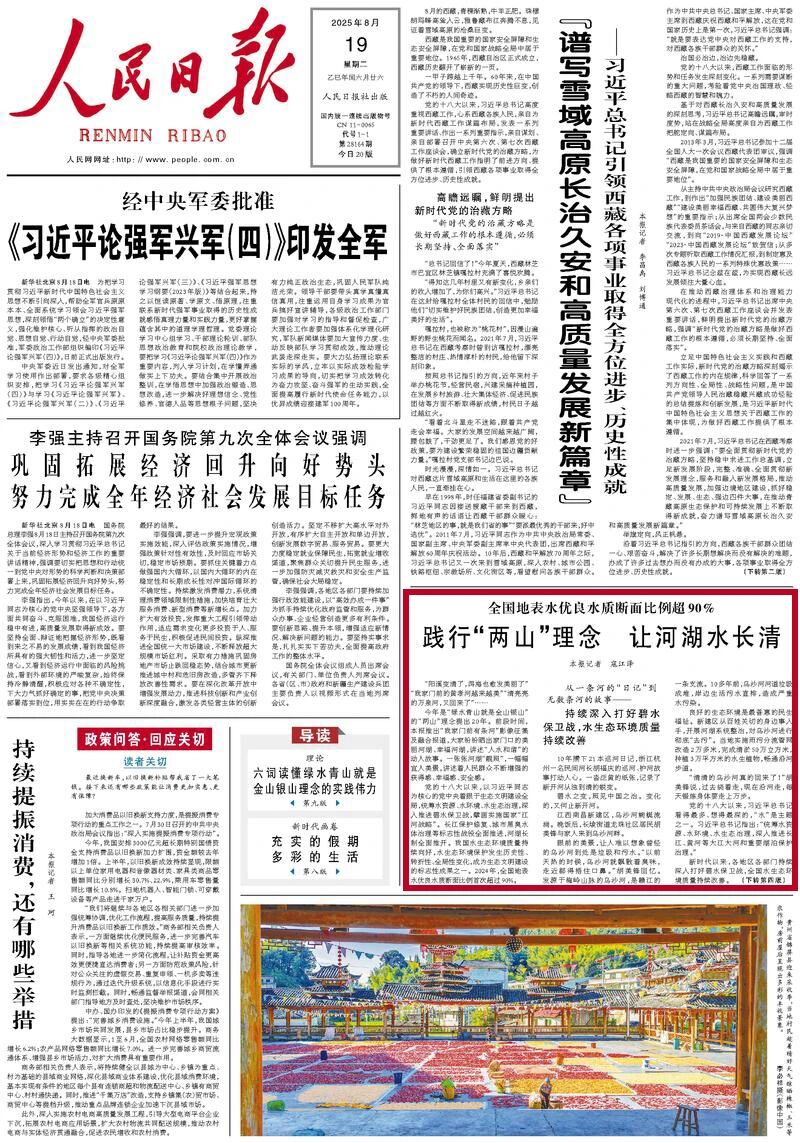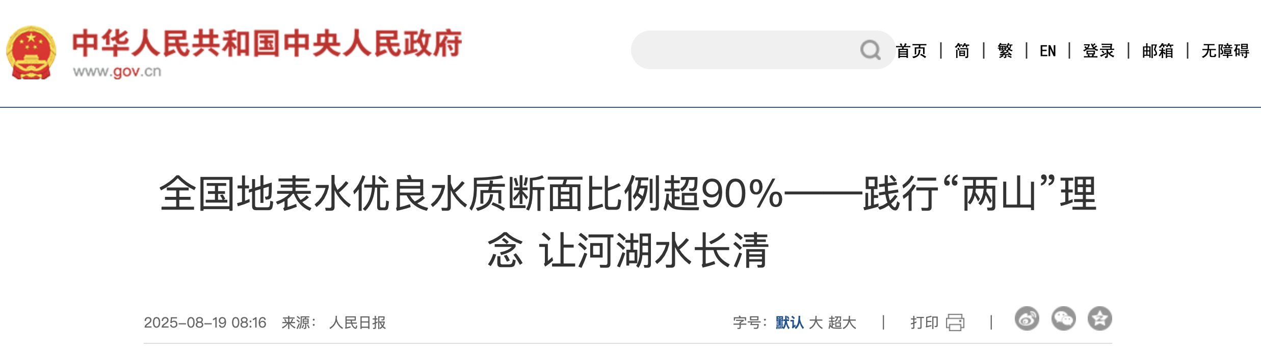 人民日报 | 全国地表水优良水质断面比例超90%——践行“两山”理念 让河湖水长清