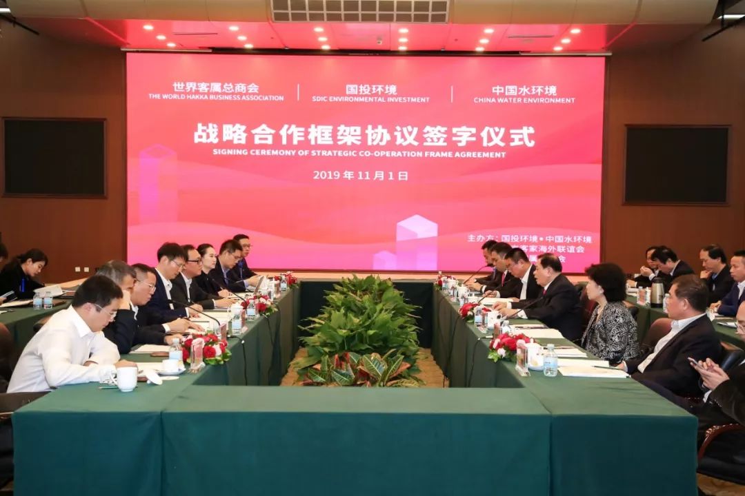 2019-11-04 On November 1, 2019, the World Hakka Business Association (WHBA), SDIC Eco-Environment Investment Development Co., Ltd., and CWEG held a strategic cooperation framework agreement signing ceremony. Shi Hongxiang, General Manager of SDIC and other leaders attended the signing ceremony.