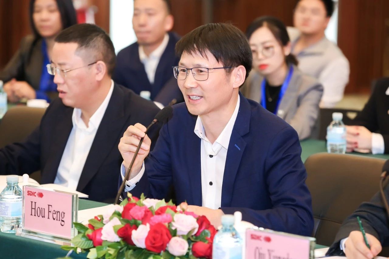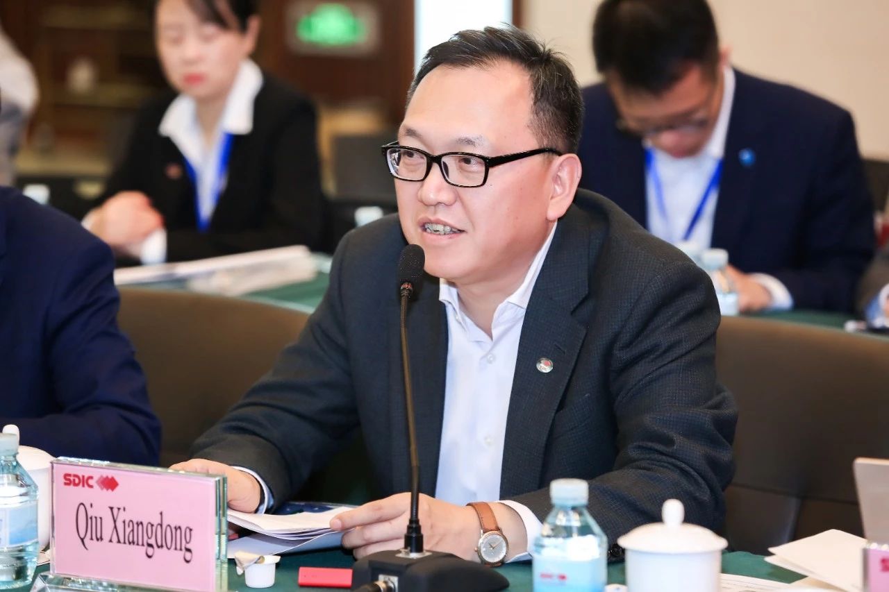 Qiu Xiangdong, Deputy Director of SDIC Strategic Development Department, delivers a speech.