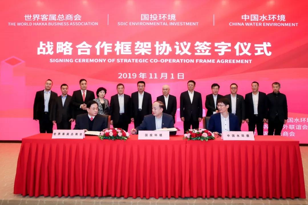 2019-11-01 On November 1, 2019, the World Hakka Business Association (WHBA), SDIC Eco-Environment Investment Development Co., Ltd., and CWEG held a strategic cooperation framework agreement signing ceremony. Shi Hongxiang, General Manager of SDIC and other leaders attended the signing ceremony.